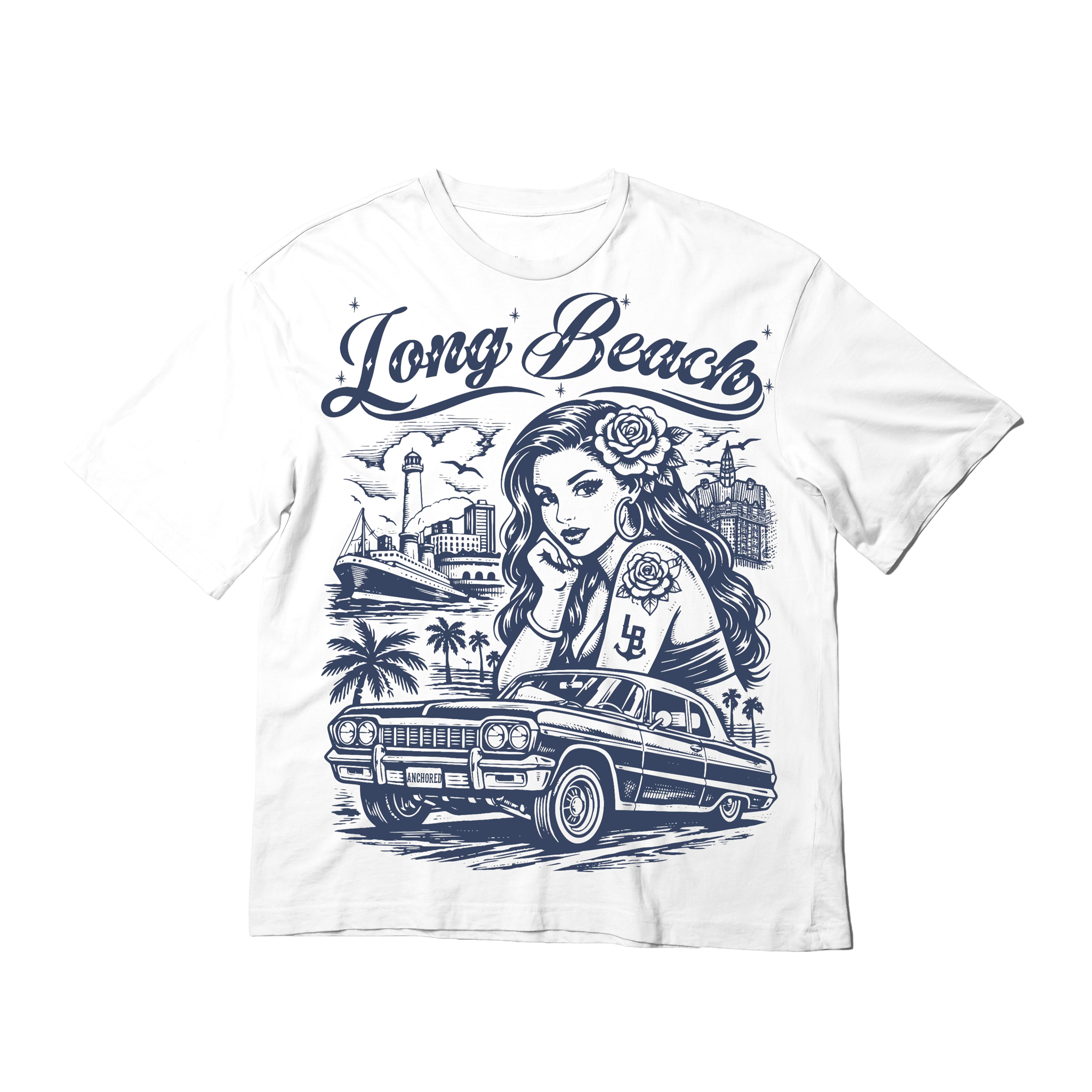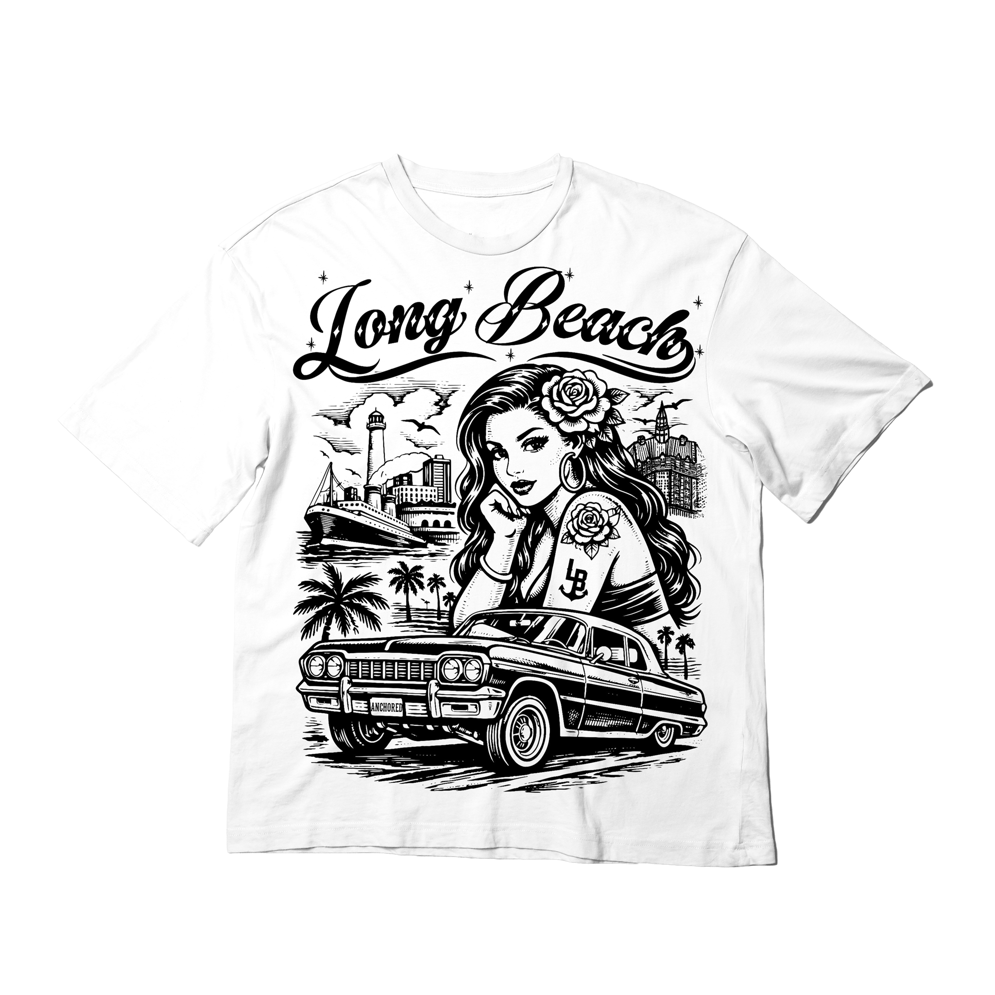 Rooted in West Coast culture and anchored in Long Beach pride, this tee is a tribute to classic lowrider heritage and timeless street style.